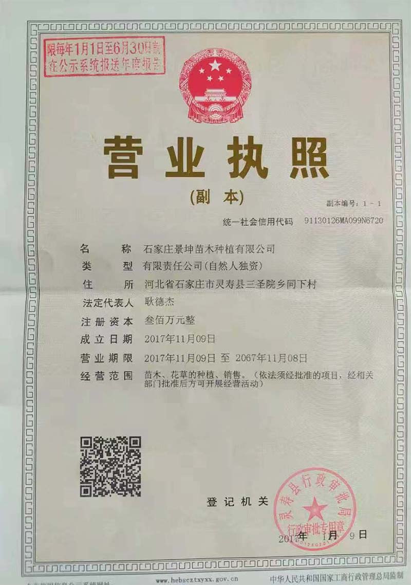 企業(yè)名稱:石家莊景坤苗木種植有限公司